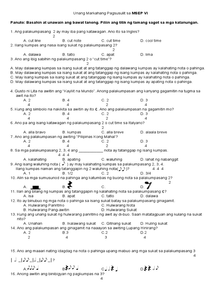 Enjoy the videos and music you love upload original content and share it all with friends family and the world on youtube. Grade 4 daily lesson log in filipino quarter 4. Bad effects of changes in the environment. Sa mga palakumpasang 2 4 3 4 at 4 4 ang quarter note at quarter rest ang tumatanggap ng isang kumpas samantalang sa palakumpasang 2 2 ang tumatanggap ng isang kumpas ay ang half note at half rest.