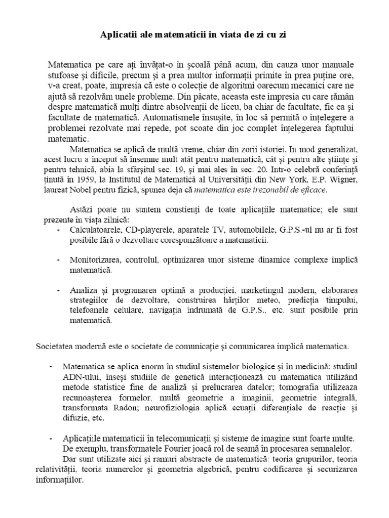 Roger bacon scria in 1267 ca matematica este poarta si cheia stiintelor. Utilizarea tehnologiei informatiei in viata de zi cu zi calculatoarele la serviciu. Nu cu toti insa majoritatea nu vor sa explice bine ca sa venim la ei la meditatii am patit o si in scoala generala si in liceu si cred ca de aceea avem toti scarba fata de matematica. Una dintre cele mai cunoscute inegalităţi în matematică este inegalitatea dintre media aritmetică şi media armonica a două sau.