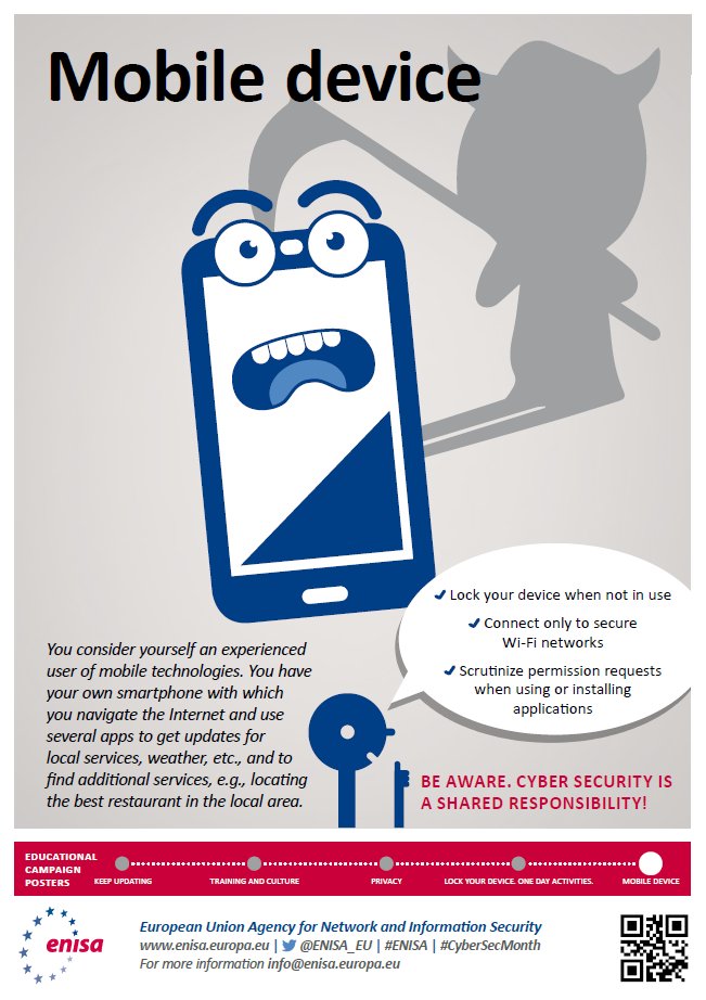 Mobile device security poster. Security must be central to an organization s workforce mobility strategy in order to protect corporate data maintain compliance mitigate risk and ensure mobile security across all devices. This policy describes the minimum security policy for mobile devices. Mobile device management systems and policies. But not all is lost.