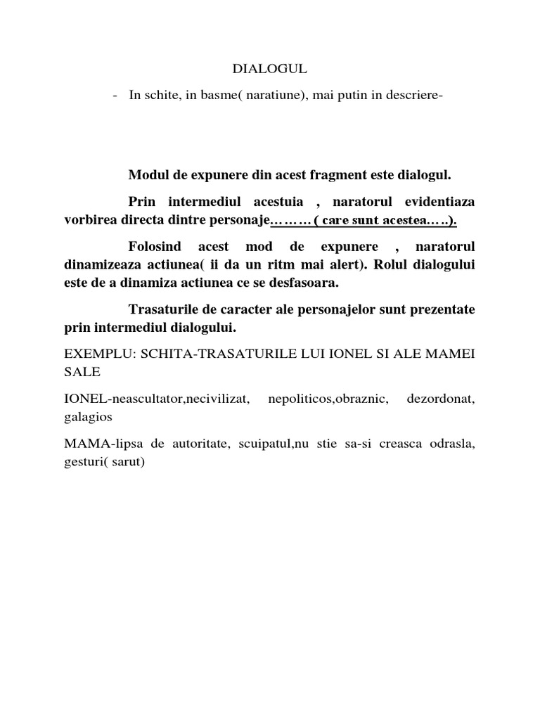 Moduri de expunere 1 dialogul este un procedeu literar o modalitate de expunere care presupune alternarea de replici între două sau mai multe persoane pentru a evidenţia gândurile şi sentimentele personajelor contribuind astfel la crearea ritmului şi dramatismului acţiunii. Naratorul este ipostaza literala a autorului real care povesteste evenimentele descrie locurile si explica cele intamplate naratiunea este modul de expunere specific operelor. Modurile de expunere reprezintă modalitățile pe care scriitorul le utilizează în operele literare. Caracterizata prin temporalitate naratiunea este specifica genului epic si desprindem.