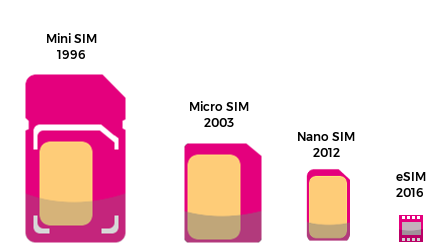 This type of card is found in the 4th generation of iphones galaxy s5 etc. This sim is smaller and thinner than standard and micro. This type of card is mostly commonly found in older devices. This is an embedded sim card there is no physical card to insert remove and must be.