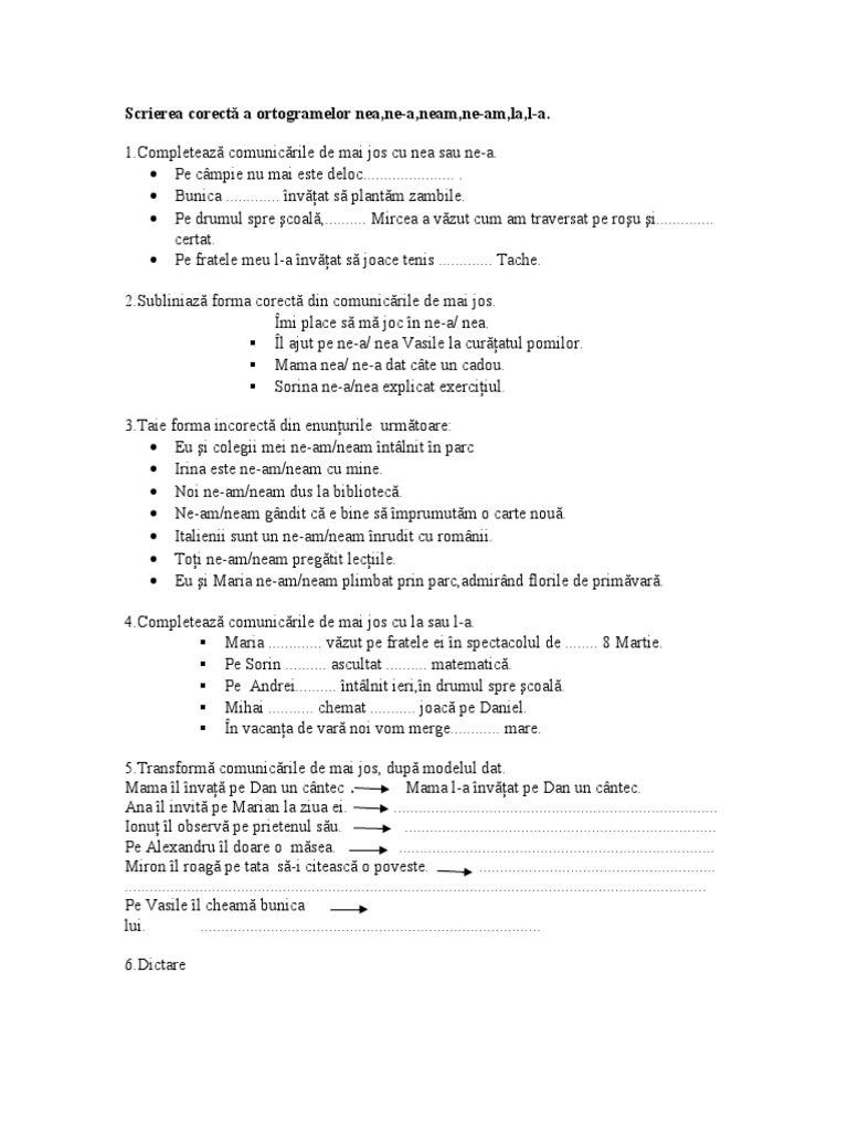 Nea se scrie fără cratimă atunci când. Domnul ne a creat dupa chipul sau el ne a invatat sa uram ce i rau sa nu ne mai intoarcem pe unde am fost ca n are nici un rost nu mai vrem in lume sa ratacim vrem de azi viata cu el s o traim tot ce avem sa punem in mana lui in mana domnului ref. De obicei avem un verb dupa aceea la fel cum este si cazul i a sau ia. Avem aici un exercițiu de completare a spațiilor libere cu nea sau ne a.