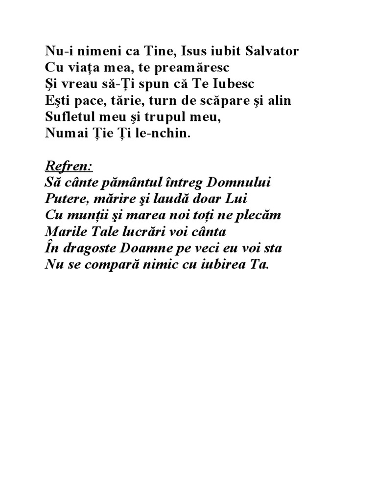 Nu i nimeni ca tine. Sa l slavim elim harmony. Nu i nimeni ca tine isus prin nopţi de durere să dea mângâiere nu i nimeni ca tine isus. Nu i nimeni ca tine isus bis s aducă iertare. Nu i nimeni ca tine sa stearga suspine nu i nimeni ca tine isus.