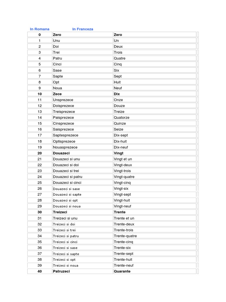Numerele naturale de la 0 la 31 cuvinte care încep cu același sunet ziua. Numărul 1 nu e considerat număr prim. 0 zero zéro zeroo 1 unu un an 2 doi deux dio. Pentru însușirea noilor cunoștințe poate fi utilizată prima fișă din document.