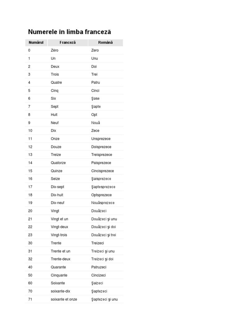 0 zero zéro zeroo 1 unu un an 2 doi deux dio. Link la comentariu duminică 04 octombrie 2015 16 26 postat de antoniu. Funda pentru cel mai corect raspuns. Numerele de al 1 la 1000 in franceza mai jos o sa aveti mai multe rezultate pentru cautarea numerele de al 1 la 1000 in franceza.