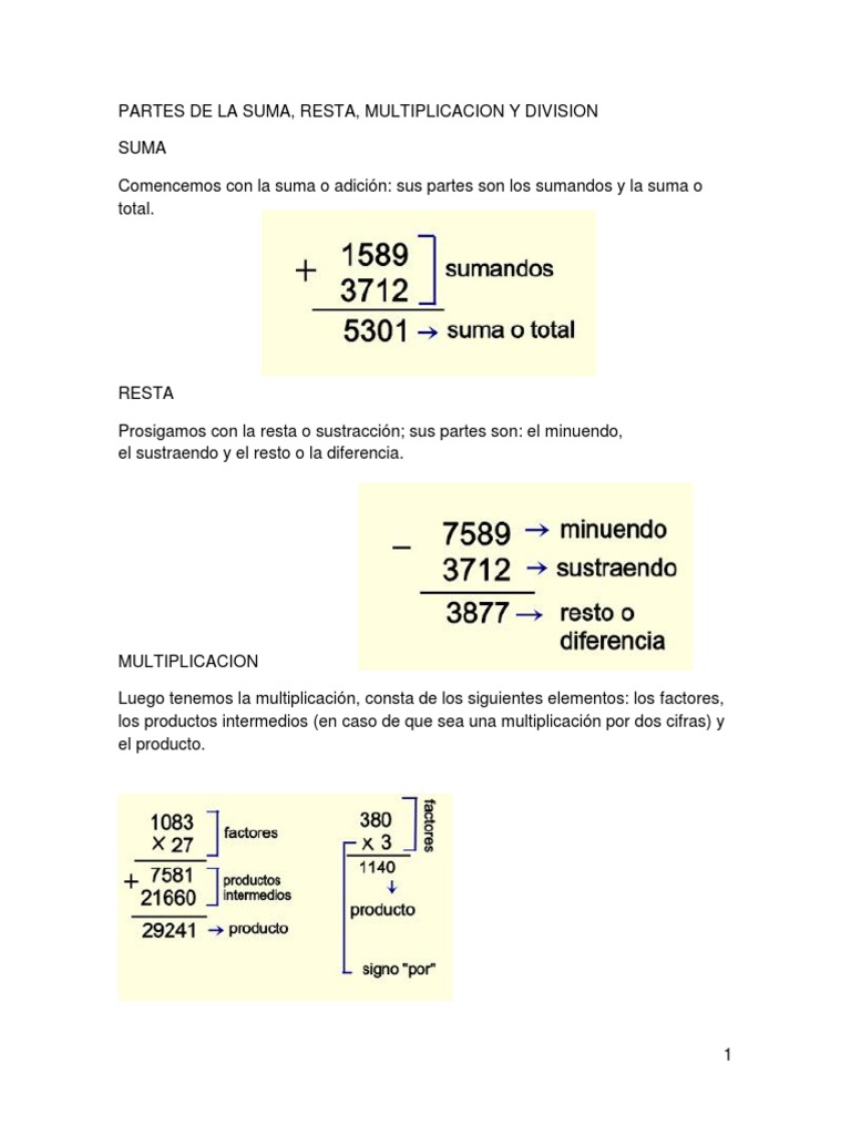 Partes De La Suma O Adicion