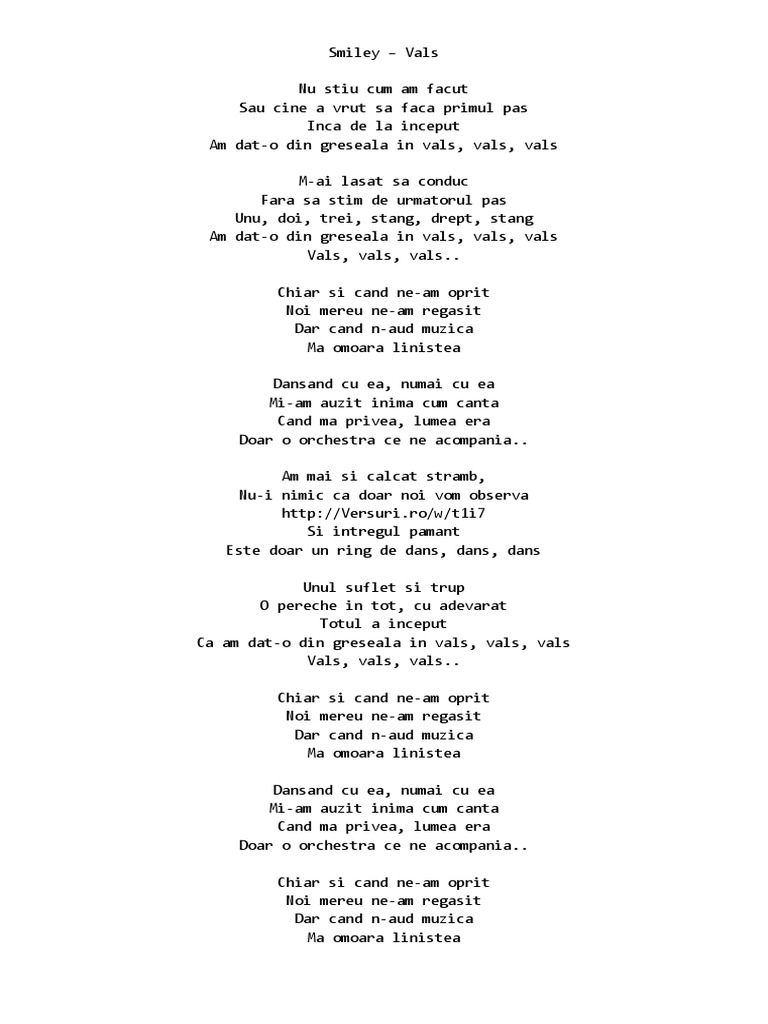 Dau cu feeling u antemic pe alt hit matusalemic scufund corabii chiar de mic sar astia din ele ca de pe titanic e level 1000 alerta se stie sunt all in cu asi pe pe pe meserie locomotiva vie pe viata dedicat. Nimic de ea nu poate a ne desparte. Maria radu pas cu pas versuri. Nu e infractiune am crezut ca mi era meseria da cand eram eu mic toti trageau h a si si furau palaria legea incalcata cum ieseam din casa.