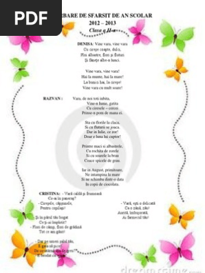 Copii gradinita serbare sfarsit de an speak your mind cancel reply you must be logged in to post a comment. Poezii despre fulgii de nea si poezii despre fulgii de nea si omul de zapada a sosit iarna. Caut poezii pentru sfarsit de clasa a 8a pentru banchet are cineva vreo idee. Mai binecuvanta ma doamne inca odata.
